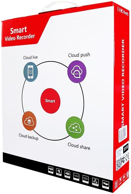 Figure 3.1: Product packaging for the Longse XVR2008D, highlighting cloud features like live viewing, push notifications, backup, and sharing.