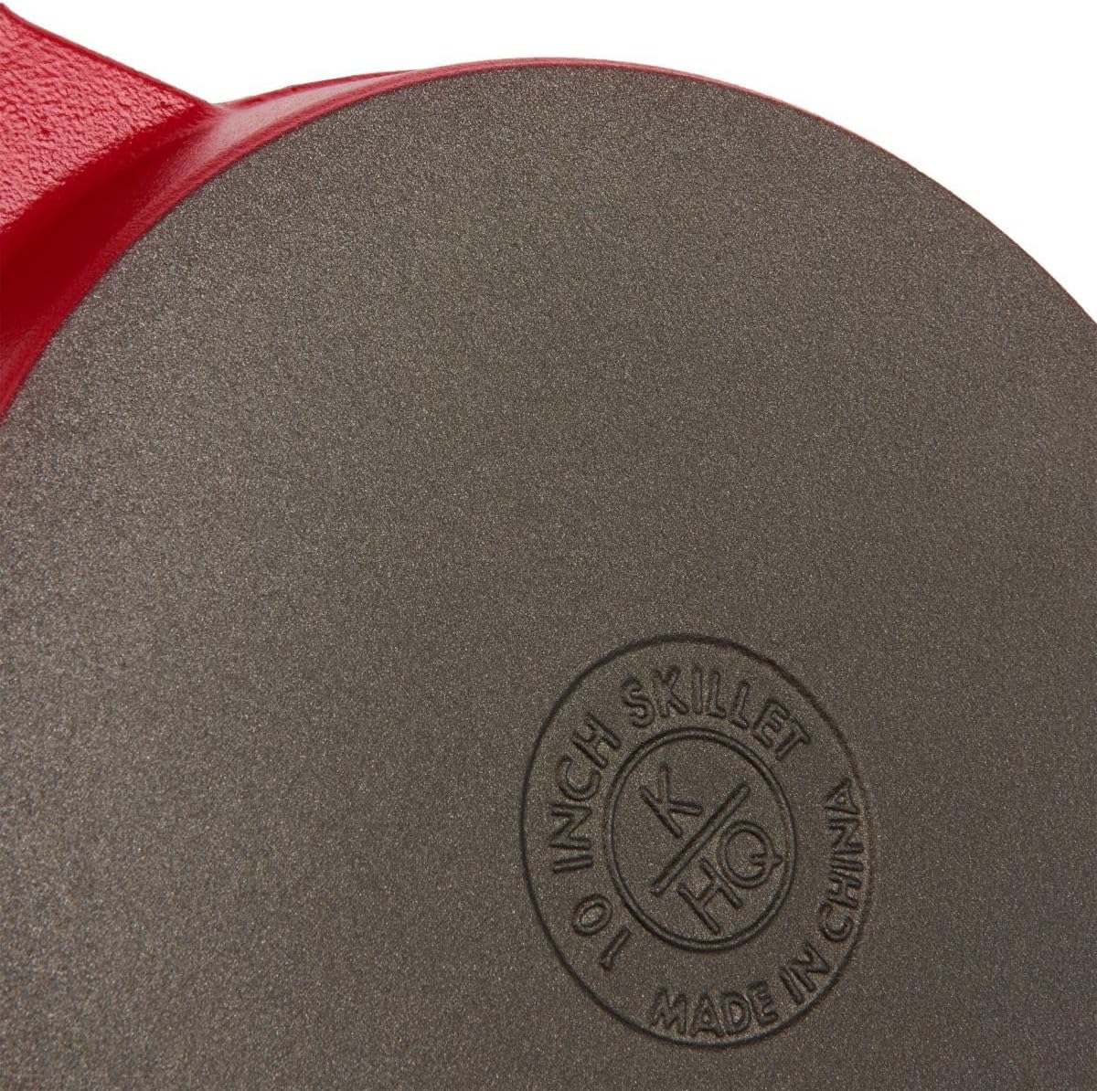 Image 7.1: Close-up of the bottom of the skillet, displaying the embossed text '10 INCH SKILLET HQ MADE IN CHINA', confirming the product's size and manufacturer.